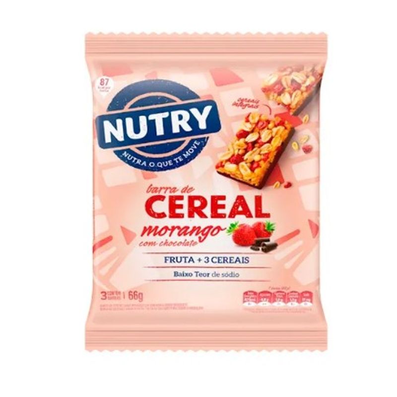 Barra de Cereal Nutry com 3 Morango com Chocolate com 3 Unidades - 66g