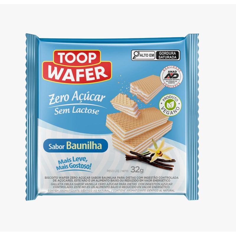 Zero adição de açúcares e sem lactose: adoçado com edulcorantes como stevia e sucralose, ideal para quem busca uma vida com menos açúcar, inclusive veganos e intolerantes à lactose Três camadas crocantes de wafer: casquinha fina e leve que derrete ao morder, contrastando com o recheio delicado de baunilha