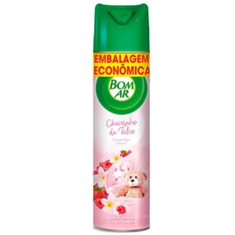 O aromatizador de ambiente aerossol Bom Ar 3072562 possui fragrância Cheirinho de Talco é ideal para deixar sua casa com um cheirinho agradável e refrescante. Sua fórmula contém ingredientes de alta qualidade que garantem uma perfumação duradoura. Além disso, o produto é prático e fácil de usar, basta apertar a válvula e pronto. A embalagem econômica contém 360ml. Foi especialmente formulado com uma delicada e exclusiva fragrância que age em poucos segundos e perfuma suavemente o ar da sua casa, criando um ambiente agradável e acolhedor.