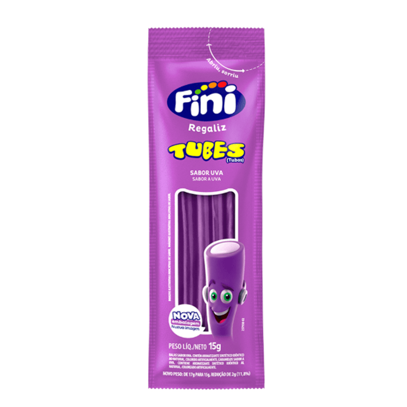 Tubes Uva Fini, o primeiro Tubes Uva do Brasil. Docinhos, cumpridinhos e saborosos, possuem formato de tubo.