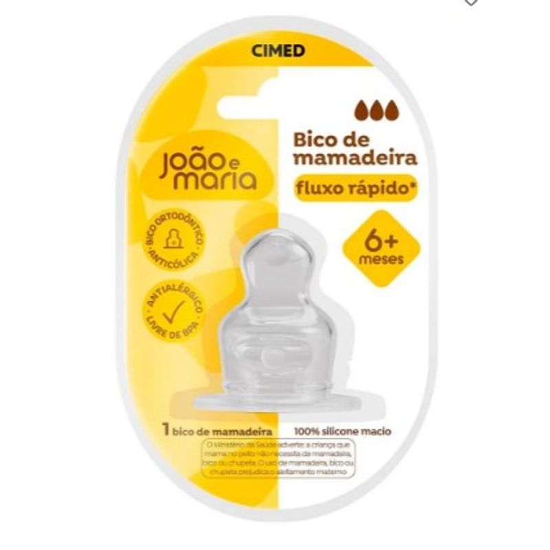 O Bico para Mamadeira João e Maria Silicone Orto Fluxo Rápido foi desenvolvido para ser utilizado com as mamadeiras da linha João e Maria. Fabricado em 100% silicone macio, é transparente, inodoro e resistente, oferecendo maior conforto para o bebê. Seu formato ortodôntico com furo de ventilação auxilia na redução da ingestão de ar durante a sucção, prevenindo cólicas e contribuindo para uma alimentação mais tranquila. Indicado para bebês a partir de 6 meses.
