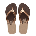 O Chinelo Havaianas Elegance Print Café no tamanho 35/36 é a escolha perfeita para quem busca aliar sofisticação e conforto no dia a dia. Com um design moderno e elegante, este modelo se destaca pelas tiras lisas metalizadas com um delicado filete vazado em um dos lados, conferindo um toque de requinte ao calçado