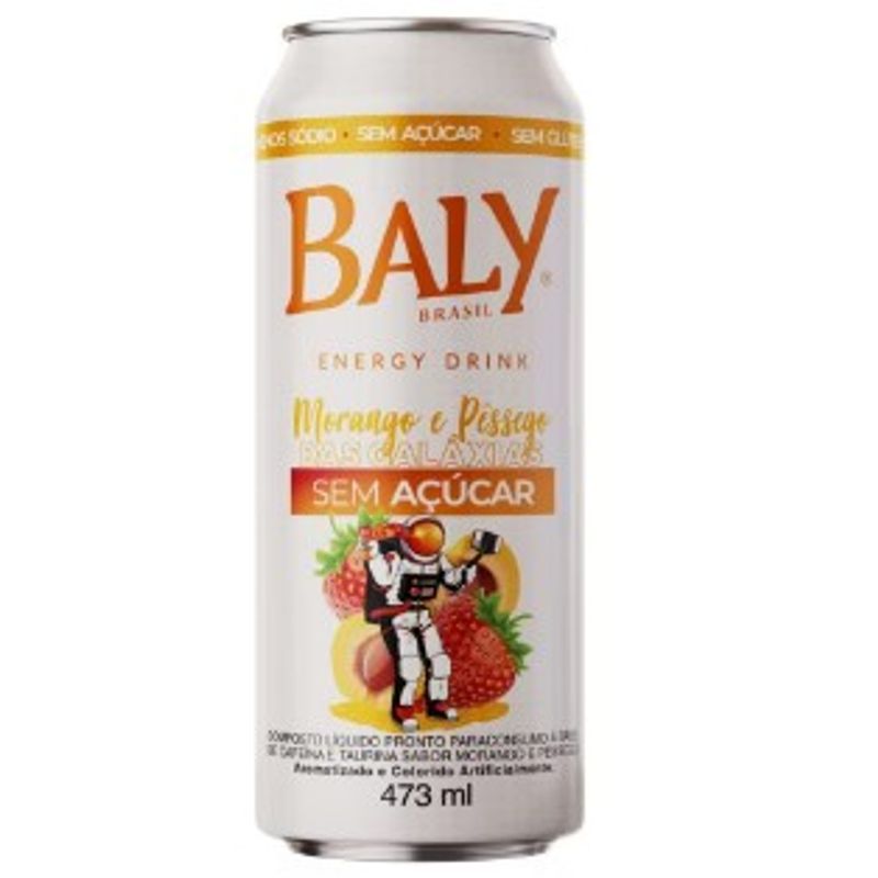 Energético Baly Morango e Pêssego Sem açúcar - Lata 473 ml
