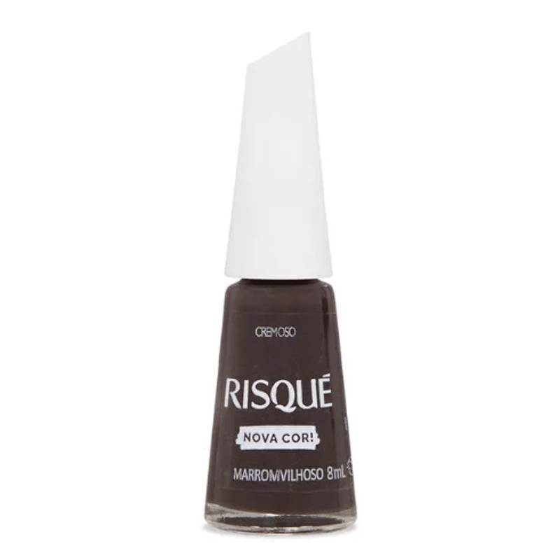 O esmalte nude Risqué Marromvilhoso é um marrom escuro com acabamento cremoso, de secagem rápida e com ultra brilho, além de ter longa duração nas unhas. Sua fórmula é hipoalergênica, isto é, livre de componentes que costumam causar alergias, seu pincel proporciona aplicação perfeita e alta cobertura.