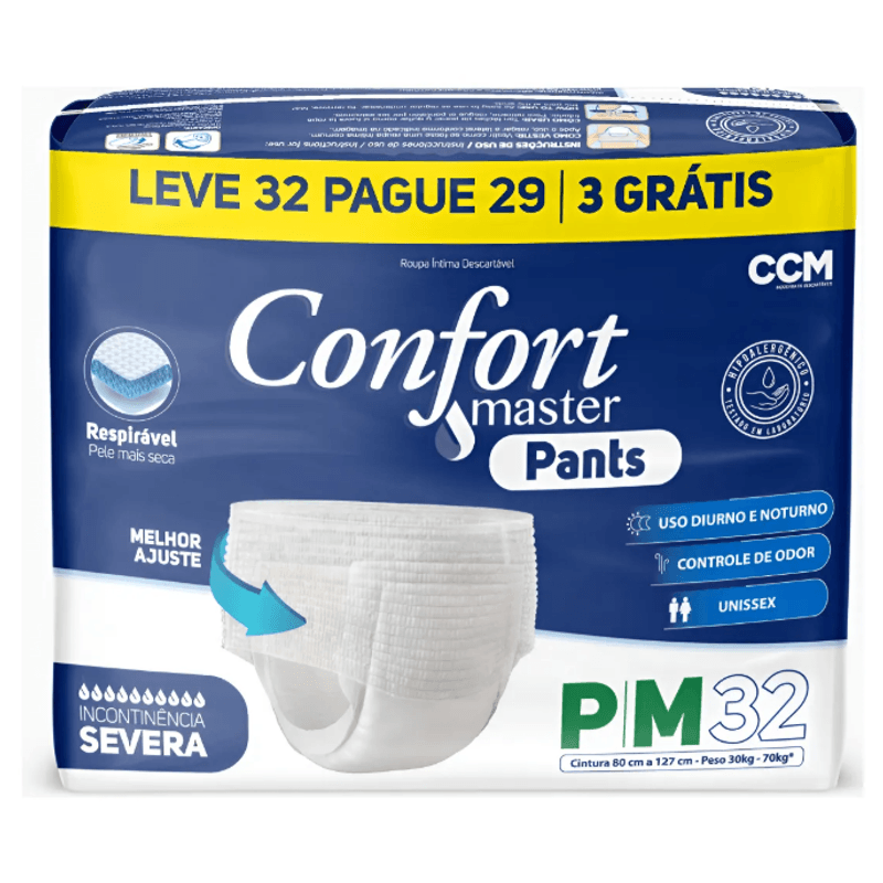 As fraldas Confort Master Pants foram desenvolvidas especialmente para atender às necessidades de quem busca conforto e segurança em momentos de incontinência severa. Com um design que se adapta ao corpo, elas garantem um ajuste perfeito com contornos que variam de 100 cm a 154 cm na cintura, proporcionando liberdade de movimento e total discrição.