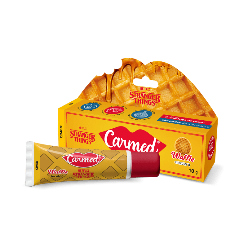 A magia de Hawkins com o Hidratante Labial Carmed Netflix Stranger Things Waffle Incolor 10g da CIMED. Esta edição especial é perfeita para os fãs da aclamada série, oferecendo uma experiência única de cuidado labial. Inspirado no lanche favorito da personagem Eleven, este hidratante labial proporciona hidratação intensa e proteção, com um delicioso aroma de waffle que remete à nostalgia e aventura de Stranger Things. Sua fórmula incolor garante conforto e um brilho natural aos lábios, tornando-o um item essencial para o dia a dia, especialmente para quem busca lábios sempre macios e bem cuidados.