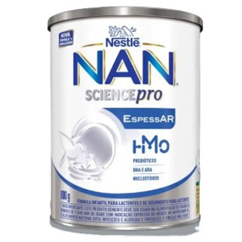 NAN EspessAR é uma fórmula infantil para lactentes, desenvolvida pela Nestlé que contém prebióticos, DHA, ARA e Nucleotídeos. Apresenta baixo teor de sódio, além de ser sem açúcar, glúten e aromatizantes. Seu uso é indicado para suprir as necessidades nutricionais de lactentes de 0 a 1 ano de idade. Possui um mix de gorduras que inclui os ácidos graxos essenciais, além de vitaminas e minerais. Quando não amamentados (por questões fisiológicas ou externas), sua fórmula é adequada para a alimentação de lactentes, como fonte alimentar única, desde o nascimento até aos 12 meses de idade.