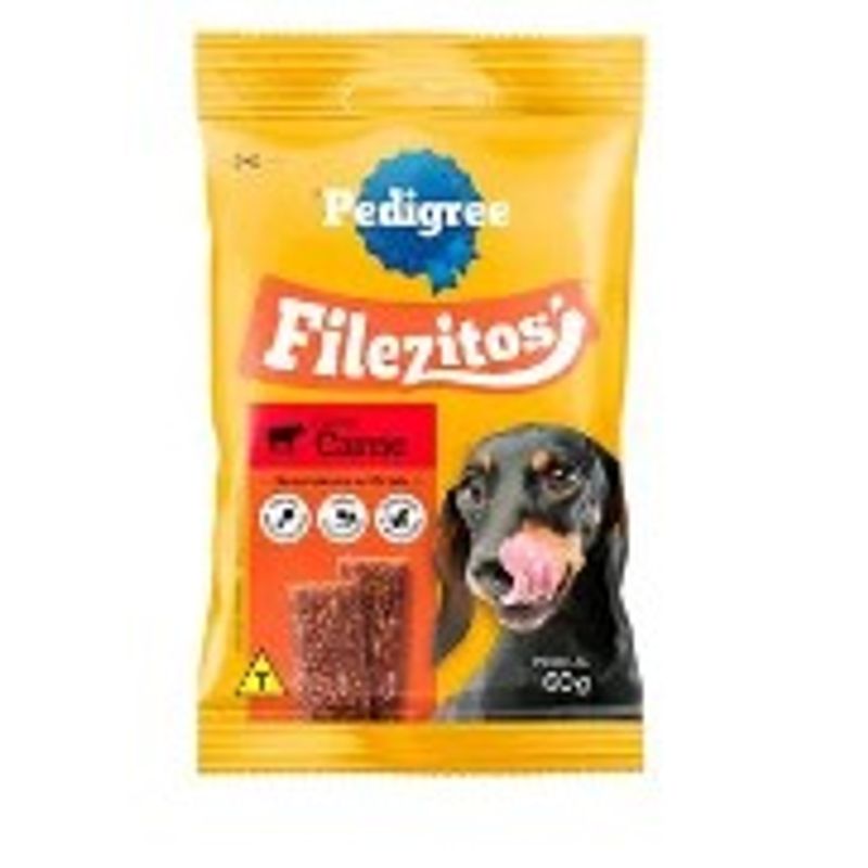 Chegou o novo Petisco para Cães Pedigree Filezitos com uma textura macia e suculenta que os cães adoram mastigar, essa delícia irresistível torna qualquer momento ainda mais especial.Filezitos é um Bifinho Macio e Saboroso para Cães Adultos de todos os portes, feito com carnes selecionadas ideal para Educar, Agradar e Recompensar seu Cãozinho! Possui um Sabor Irresistível que seu amigo vai adorar e não possui Corantes Artificiais. Ofereça o Petisco Pedigree Filezitos Diariamente como forma de agrado, recompensa e treinamento!