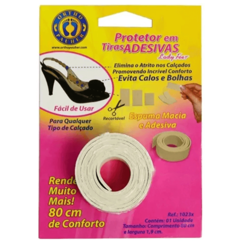 Elimina o atrito nos calçados, promove incrível conforto, evita a formação de bolhas e calos. Alivia as dores e protege regiões sensíveis dos pés. Se necessário divida a tira na parte tracejada.