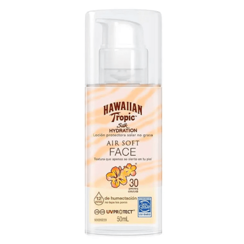 Hawaiian Tropic Air Soft Face FPS 30 é um protetor solar em formato loção desenvolvido para atuar debaixo da maquiagem. Ele conta com fórmula não oleosa com antioxidantes nutritivos, além de não obstruir os poros.
