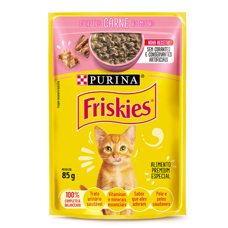 Racao gatos friskies sache filhote carne ao molho 85g